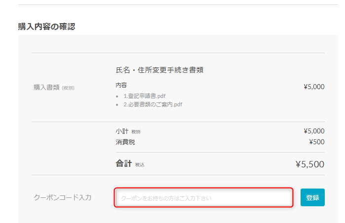 弊所とお取引いただきました方に、GVA法人登記のクーポンコード(1,000円割引)をお配りしております。